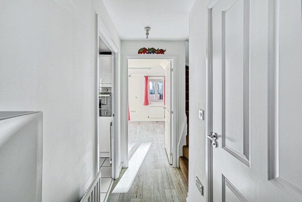 In brief, the property comprises entrance hall, downstairs WC, white high gloss kitchen with integrated appliances including Neff fridge/freezer, Bosch dishwasher, AEG induction hob and washing machine, open plan living/dining room. To the first floor are two double bedrooms, one benefiting from fitted wardrobes and family bathroom.