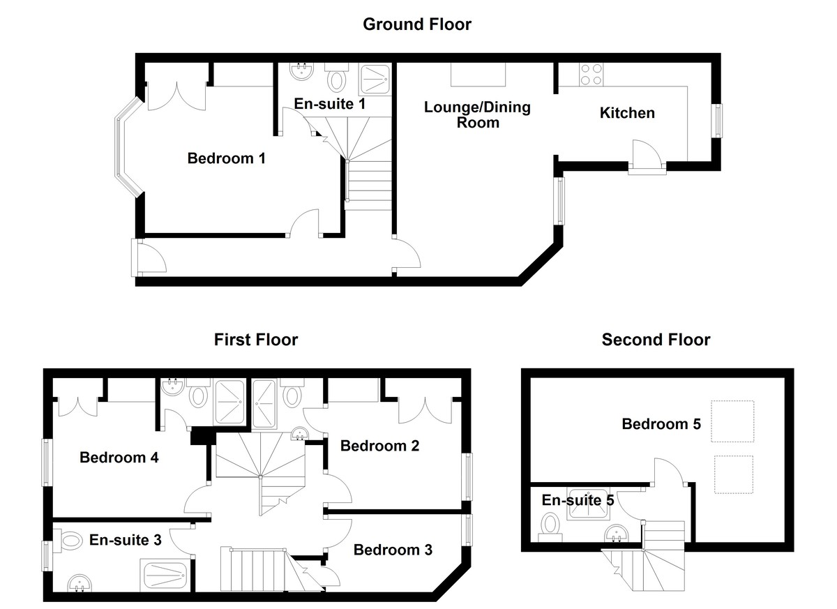 The house comprises; entrance hall, ground floor bedroom with en-suite, brand new kitchen with oven, hob, fridge, freezer, microwave and washing machine, large living room with comfy sofas and a giant TV, first-floor landing, bathroom, 3 further bedrooms, all with en-suites. The fifth bedroom is a large attic room with a large en-suite