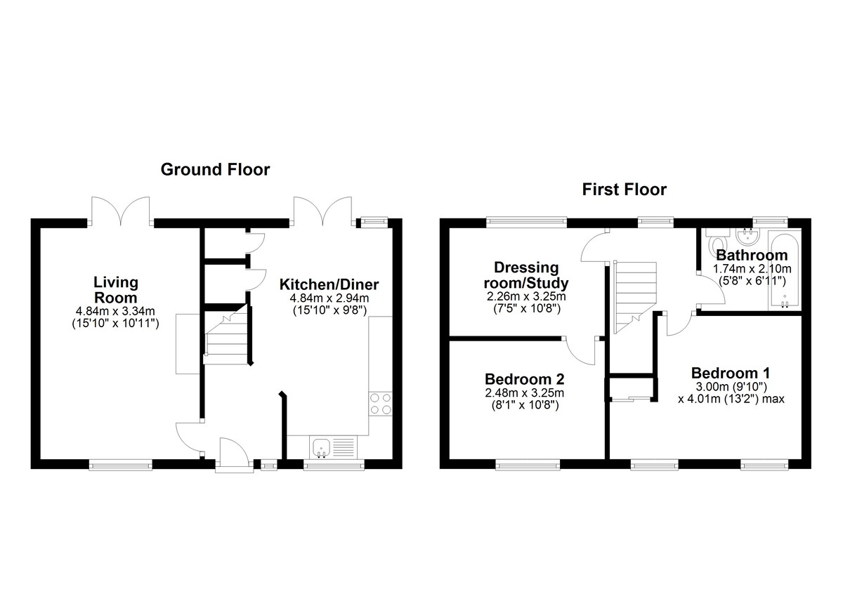 Moving upstairs, you will find two double bedrooms, both offering ample space for relaxation and rest. Bedroom one is complete with built-in wardrobes, providing convenient storage solutions. Bedroom two offers the flexibility of an additional room to be used as a dressing room or study.