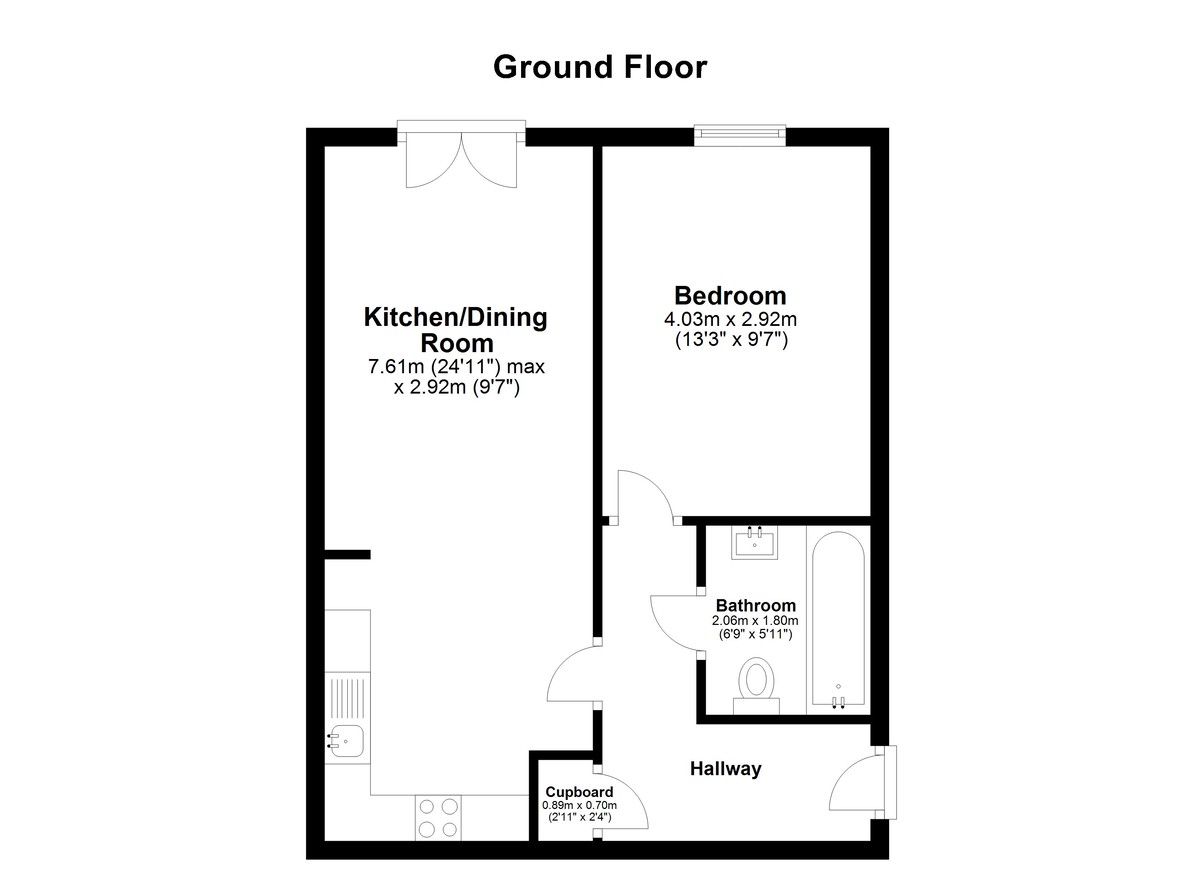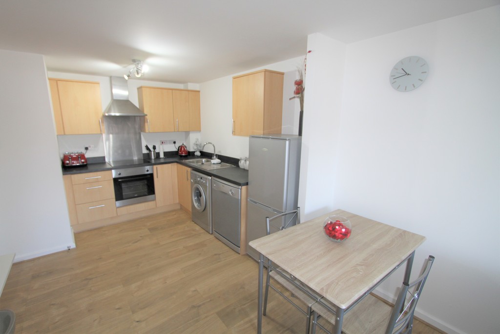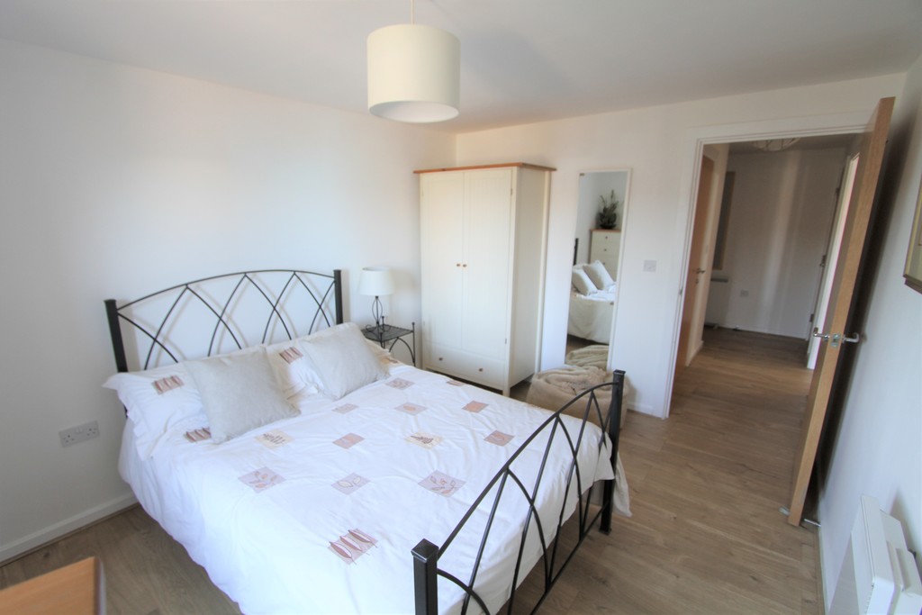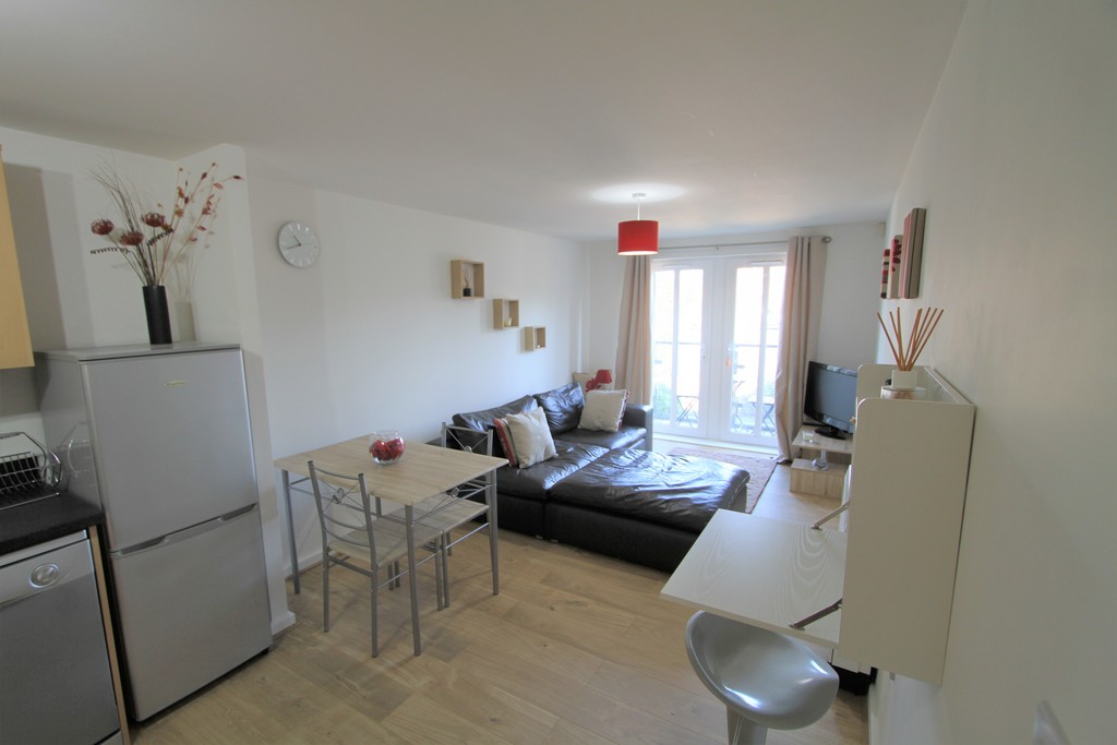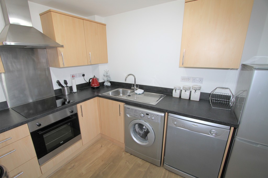 The accommodation comprises entrance hallway, open plan living space incorporating a modern fitted kitchen, (fully equipped with a range of appliances including oven and hob, fridge/freezer, washer/dryer and dishwasher), double bedroom (with built-in storage) and a bathroom with bath and shower facilities.