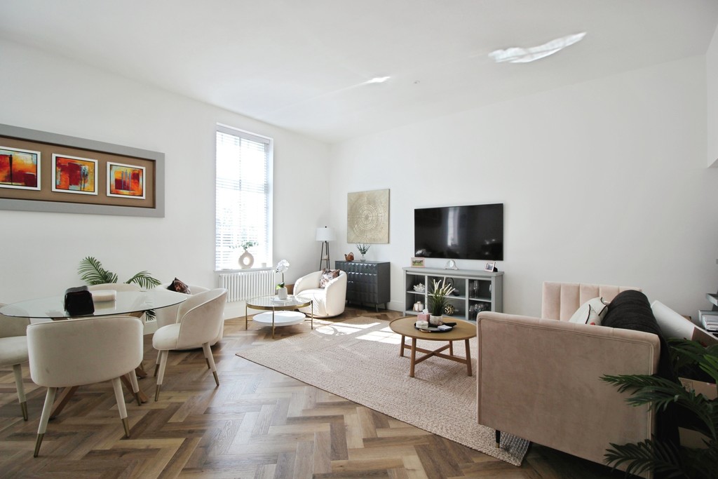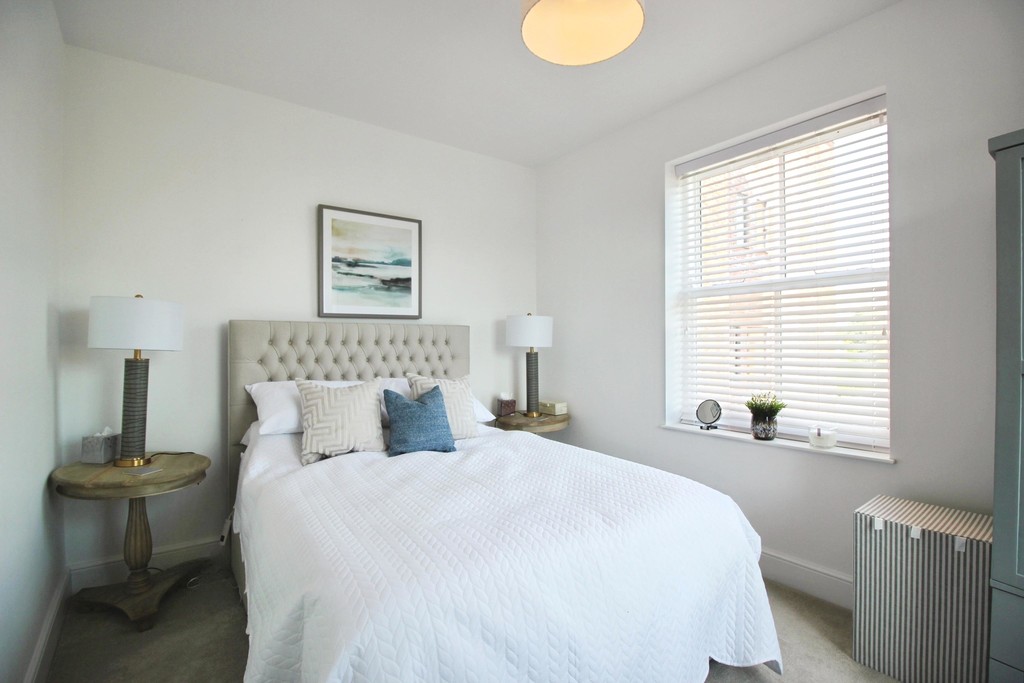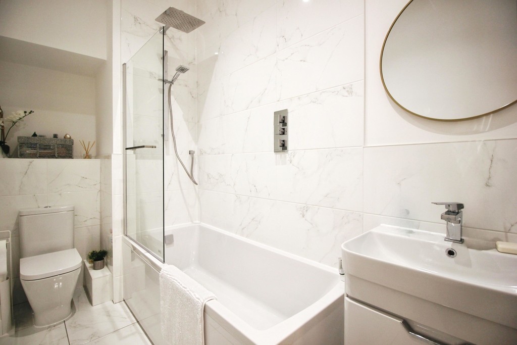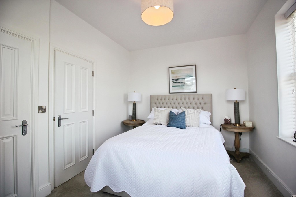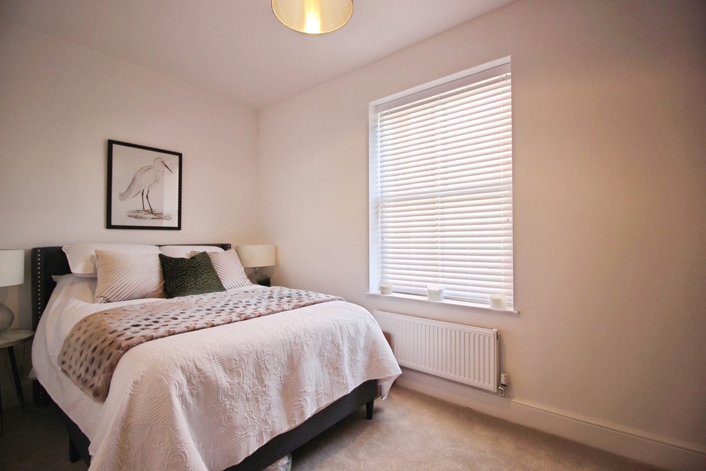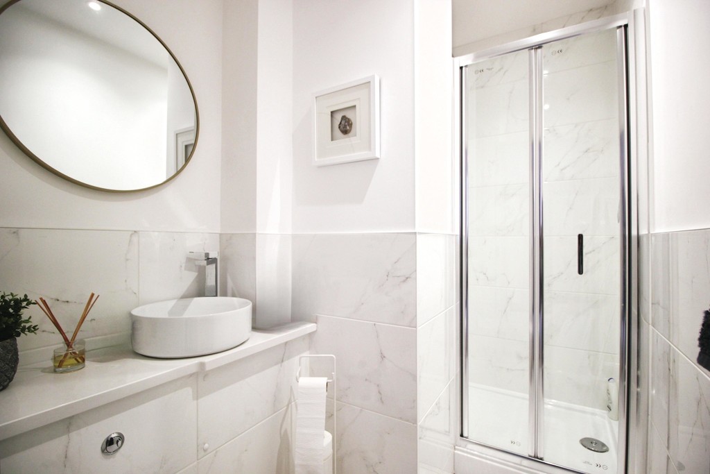 The property offers two generously sized double bedrooms. The principal bedroom benefits from a stylish en-suite shower room complete with shower, WC, and wash basin. The second bedroom is also a well-proportioned double, served by a contemporary family bathroom fitted with a shower over bath, WC, and wash basin.