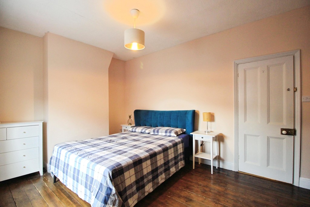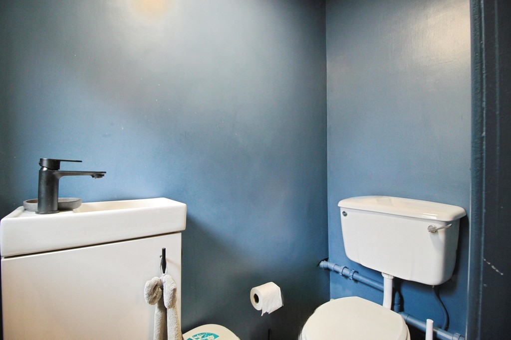 Upstairs, the property comprises three bedrooms, including two well-proportioned double rooms and a single bedroom located to the rear-ideal as a child's bedroom or home office. The spacious family bathroom is fitted with a bath and overhead shower, WC, and wash basin.
