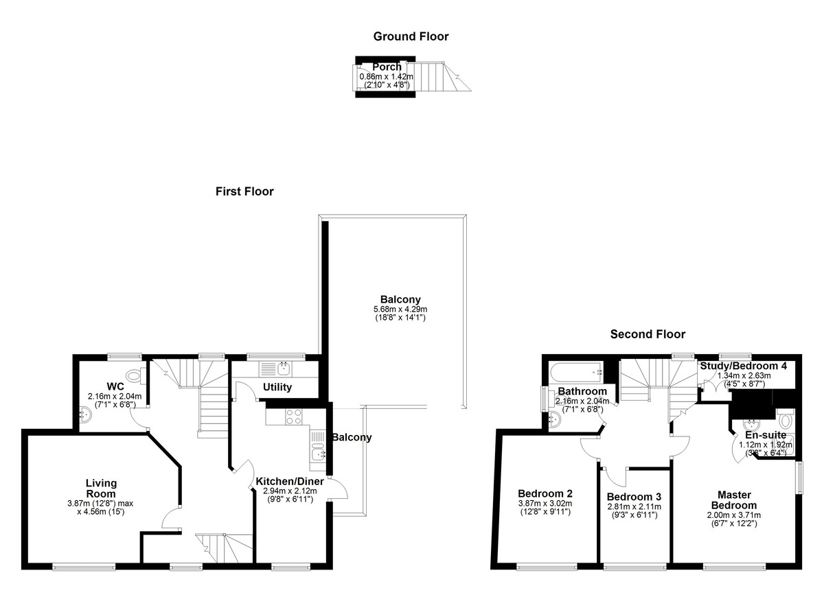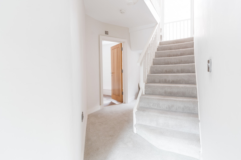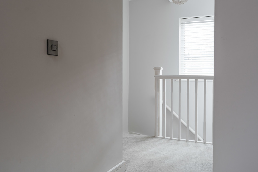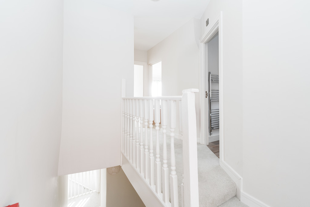 A staircase leads from the first-floor landing with useful study area to the second floor landing with an original floor to ceiling window.