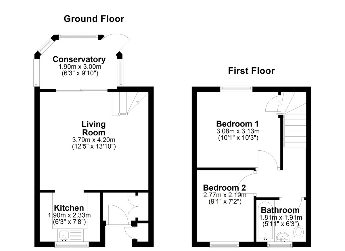 Heading up to the first floor, there are two well-proportioned bedrooms, the larger of which has fitted wardrobes. Completing the first floor is a bathroom consisting of a bath with a newly fitted electric shower above, a toilet, and a sink.