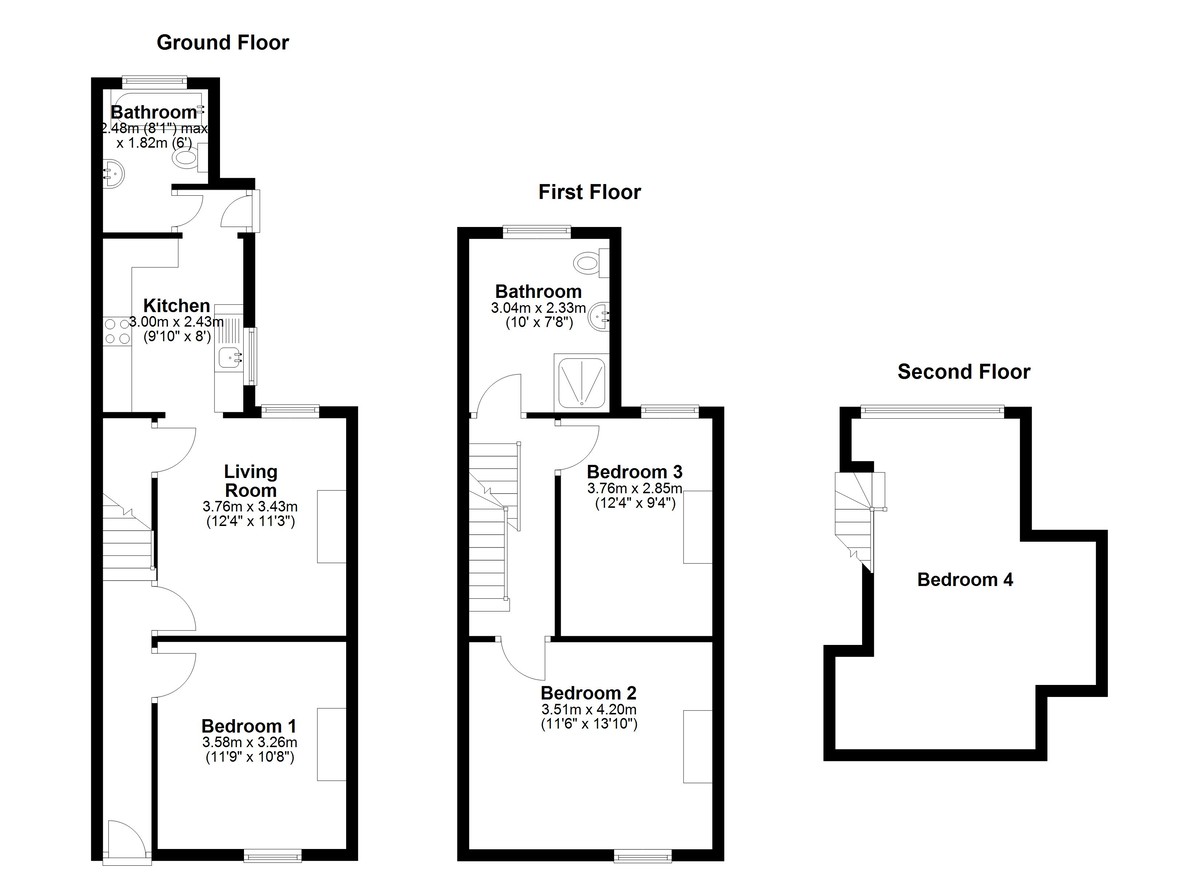 To the first floor are two generous double bedrooms and a spacious family bathroom, while the second floor hosts a substantial fourth bedroom, offering excellent privacy and versatility, perfect for a premium rental room.
