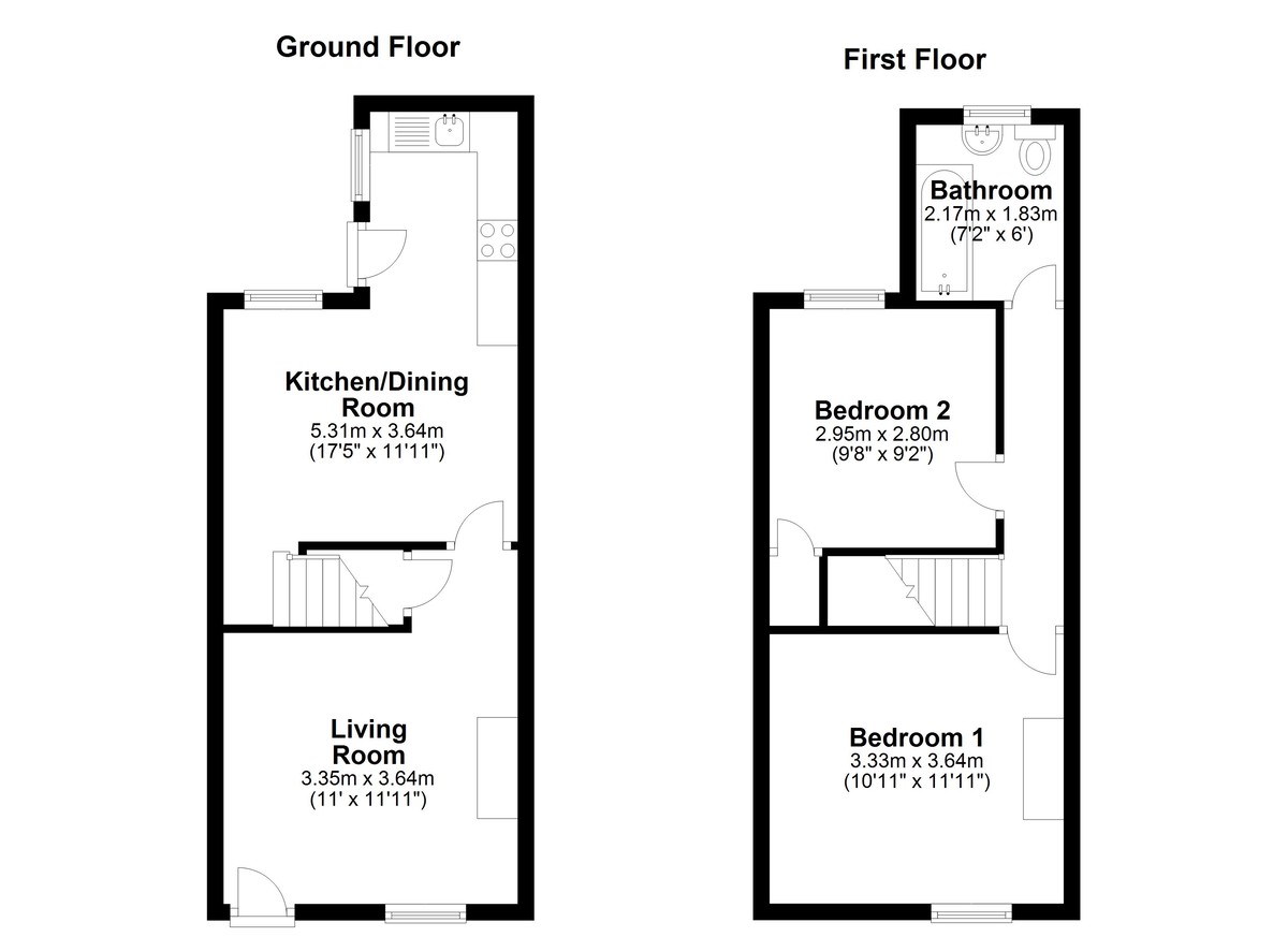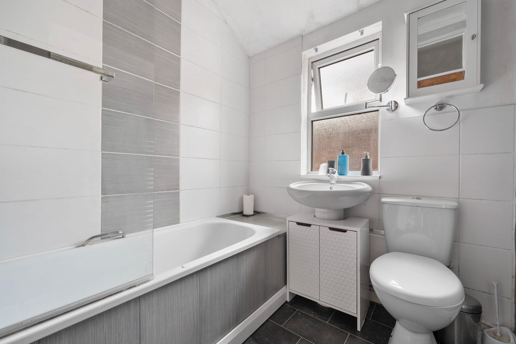 Upstairs, there are two good-sized double bedrooms, each tastefully finished, along with a bright bathroom complete with a white suite and shower over the bath. To the rear, a private low-maintenance courtyard offers a pleasant outdoor spot to enjoy in the warmer months.