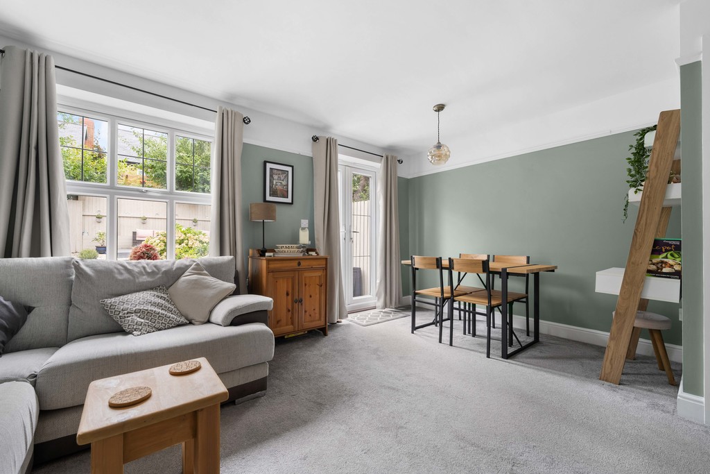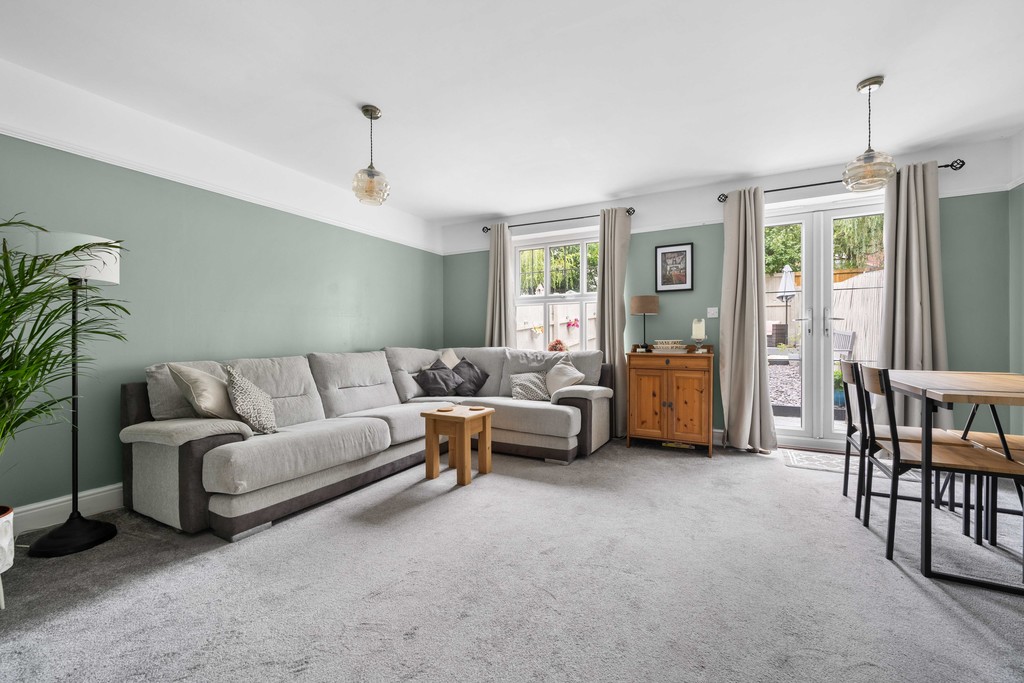 To the rear, the spacious lounge/diner is tastefully decorated and designed with comfort in mind. Large windows and French doors allow natural light to flood the space, while giving direct access to the rear garden. This creates a versatile room, ideal for entertaining, relaxing, or family gatherings.