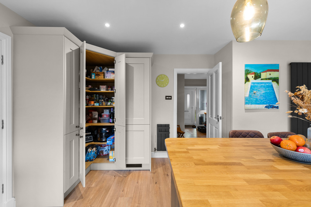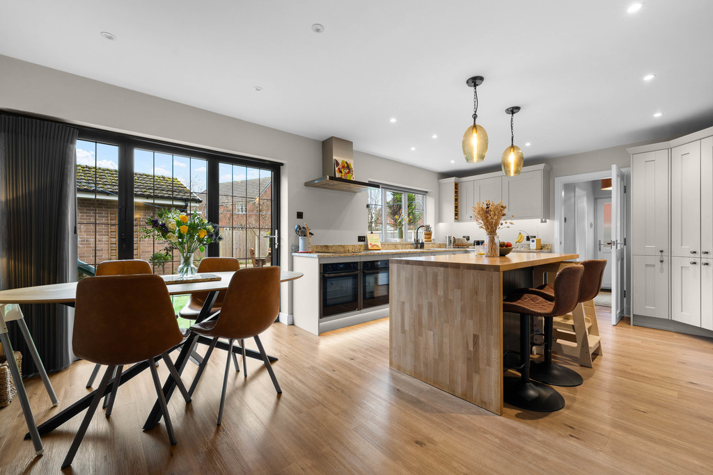 At the heart of the home is an impressive open-plan kitchen, dining and family room, thoughtfully designed as a true hub for everyday living and entertaining. Finished to a high standard, the kitchen features extensive fitted cabinetry, quality worktops, integrated appliances and a substantial central island, with excellent natural light and direct access to the rear garden - ideal for family gatherings, dinner parties and relaxed evenings at home. A separate utility room adds valuable practicality.