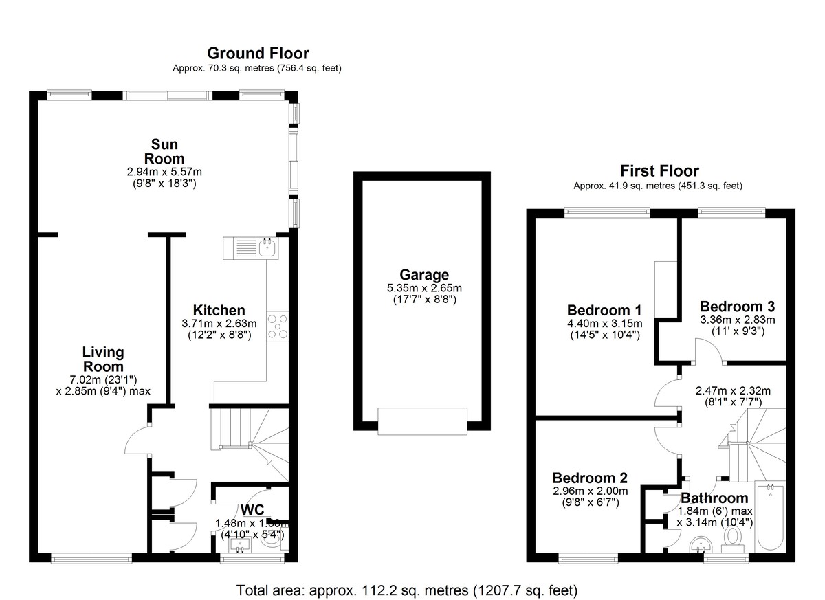 Leading up to the first floor via a U-shaped staircase, the master bedroom is to the rear of the property overlooking the garden. It is a spacious room with a large window. Bedroom two, to the front of the property, is another good-sized double with a fitted storage cupboard. Bedroom three, to the rear of the house can accommodate a double bed if required. The three bedrooms are served by a white, three-piece bathroom suite.