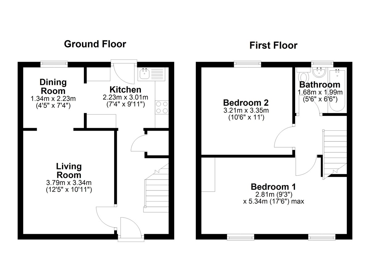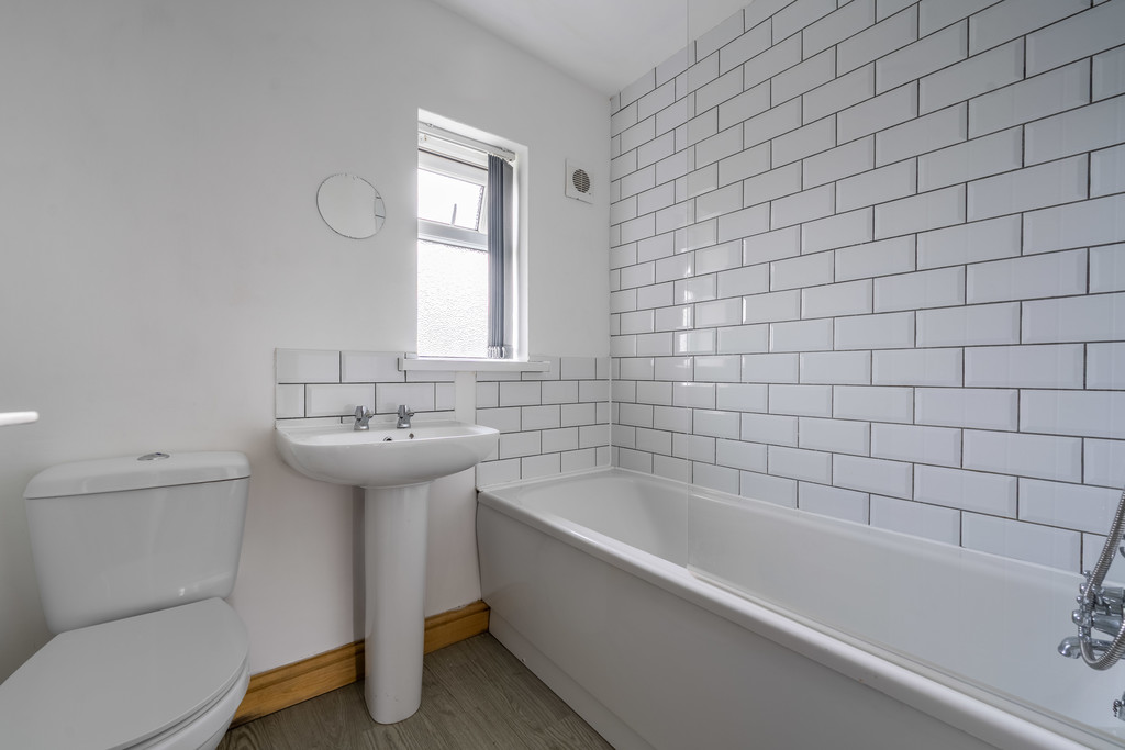 Upstairs, the home offers two generously sized bedrooms, both finished in a neutral palette with plenty of natural light. Whether used as a main bedroom, guest room, nursery, or home office, the layout offers flexibility for a range of lifestyles. The bathroom has also been fully renovated and now features a modern suite with stylish tiling and high-quality fixtures, providing a clean, contemporary feel.