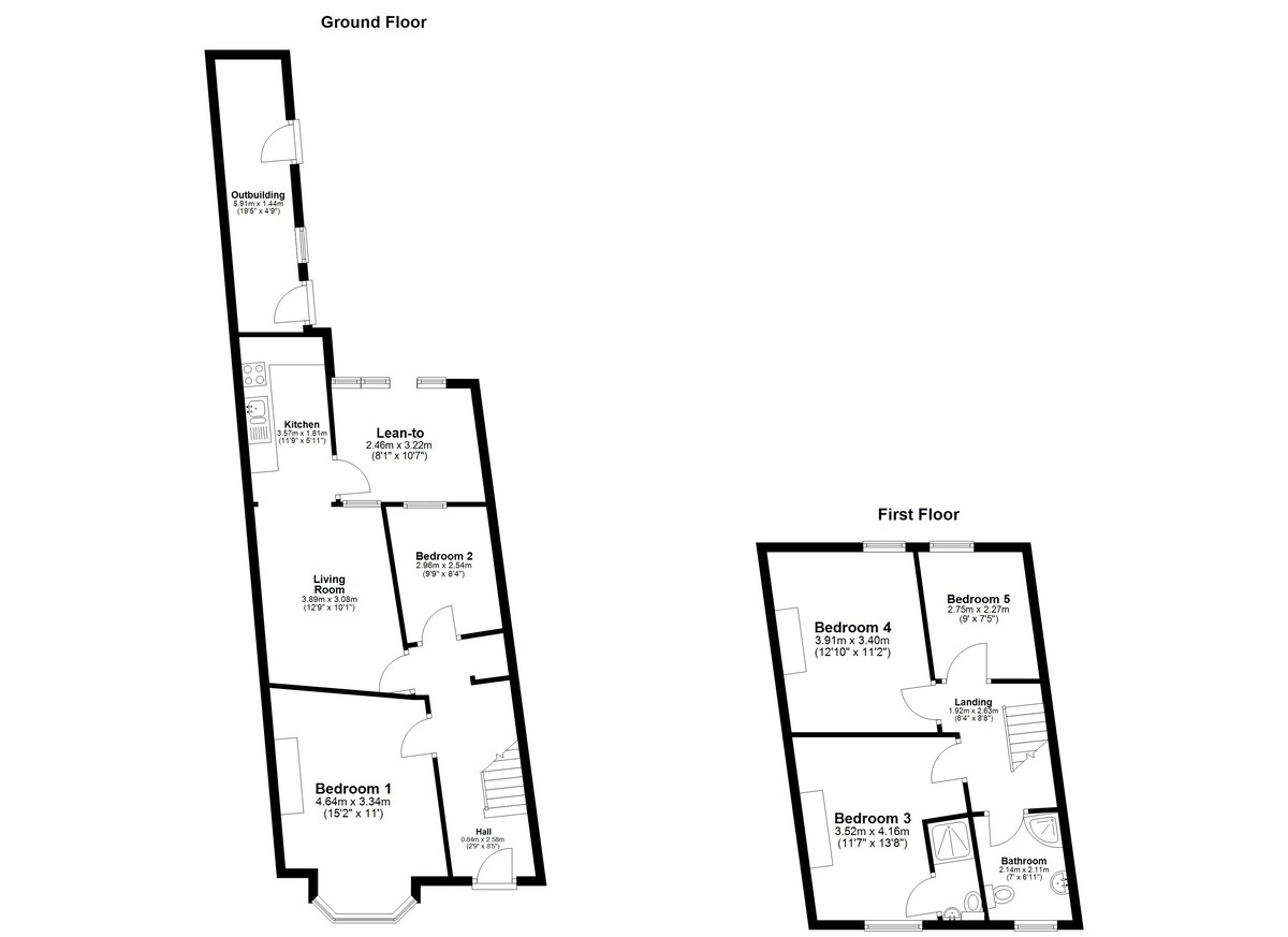 The entrance hall sets a welcoming tone and gives an immediate sense of the space on offer. To the front is a well proportioned bedroom with an attractive bay window, and a second bedroom is also accessed from the hall. A communal lounge sits towards the rear and offers a comfortable living area. This leads through to the kitchen, which has direct access to the garden. Outside, there is a lean to, a good sized patio and the aforementioned outbuildings, all of which help to highlight the potential offered by the plot. With some imagination, the ground floor could be reconfigured to create an even more practical layout for modern living.