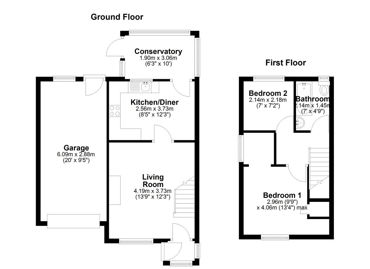 Upstairs, the property offers two generously sized bedrooms, each providing a calm and restful environment. Both rooms can easily accommodate double beds and additional furnishings, making them versatile for couples, children, or guests. The bathroom, conveniently located between the bedrooms, is well-appointed and designed to serve the household with ease.