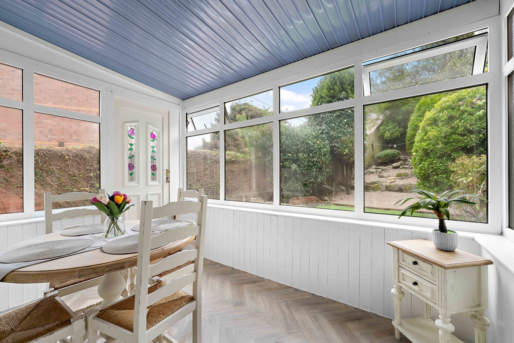 The home opens with a welcoming porch that flows into the main lounge - a light-filled, comfortable space ideal for relaxing with family or entertaining friends. Beyond the lounge, the kitchen and breakfast area is thoughtfully laid out, offering ample room for dining and everyday living. From here, the conservatory extends the ground floor, creating a bright and airy space to enjoy garden views in every season.
