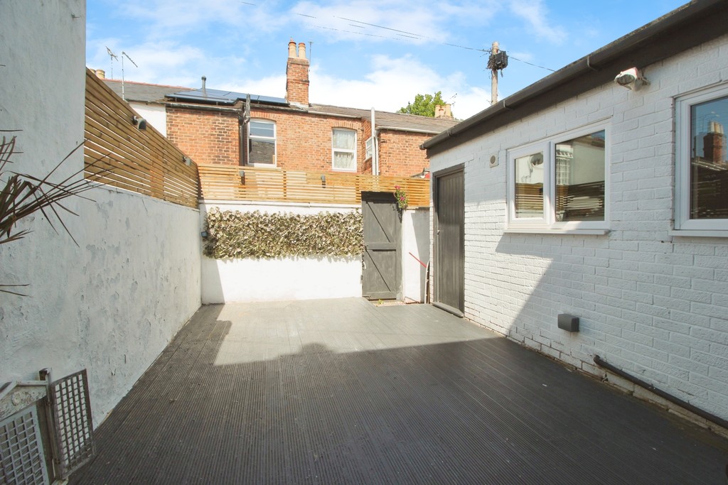 Outside, the property features a walled rear courtyard, fully decked with grey composite decking. A trellis on the courtyard wall enhances privacy, creating a wonderful space to relax in the sun. A useful brick-built storage building provides space for garden furniture or tools. Unpermitted parking is available on Lightfoot Street and the surrounding roads.