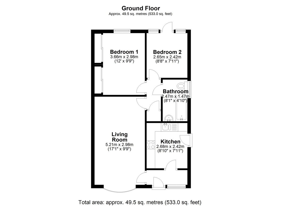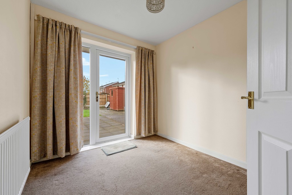At the rear of the property are the two bedrooms. The master bedroom is a good-sized double with fully fitted wardrobes and overlooks the garden. Bedroom two is slightly smaller and has a glass door leading out to the garden; this room could also serve as a dining room or home office. Both bedrooms are served by a three-piece bathroom, comprising a WC, sink, and bath with a shower over. There is also a linen cupboard that houses the hot water tank.