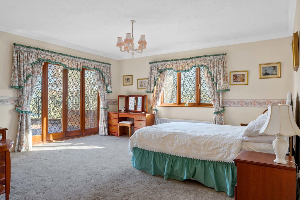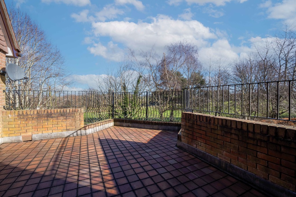 A spindled U-shaped staircase leads to the first floor, arriving at a spacious landing with an airing cupboard. The master suite is centrally positioned and offers a generously sized bedroom, a walk-in dressing room, and a luxurious four-piece en-suite. One of the standout features of this home is the expansive private terrace, accessed via French doors from the master bedroom, offering breathtaking views over the golf course-the perfect setting for a morning coffee or an evening nightcap. The second bedroom is a spacious double located at the front of the house, complete with an en-suite shower room featuring a shower, sink, and WC. Bedroom three is another well-proportioned double with fitted wardrobes, while bedroom four is also a comfortable double. Off the landing, a large family bathroom boasts a bath, separate shower, WC, and sink.