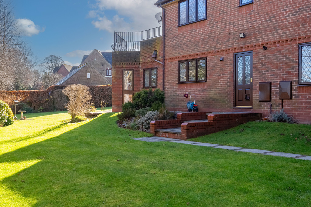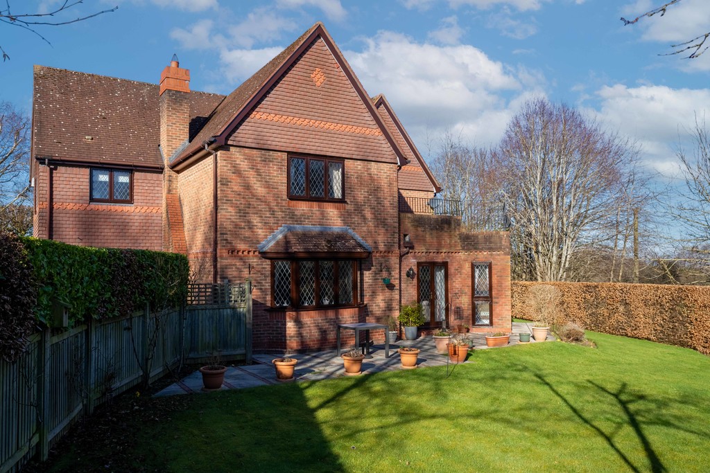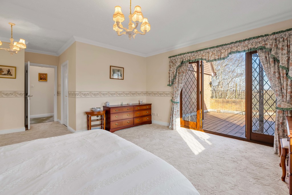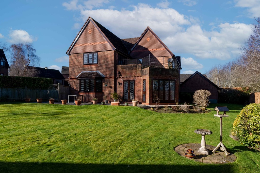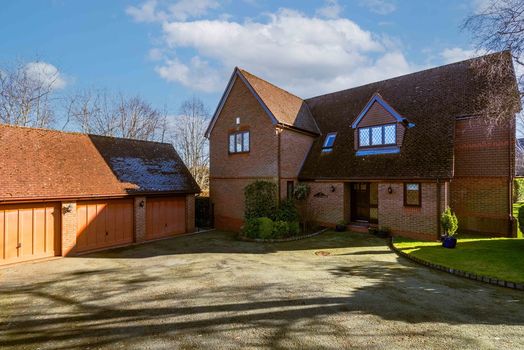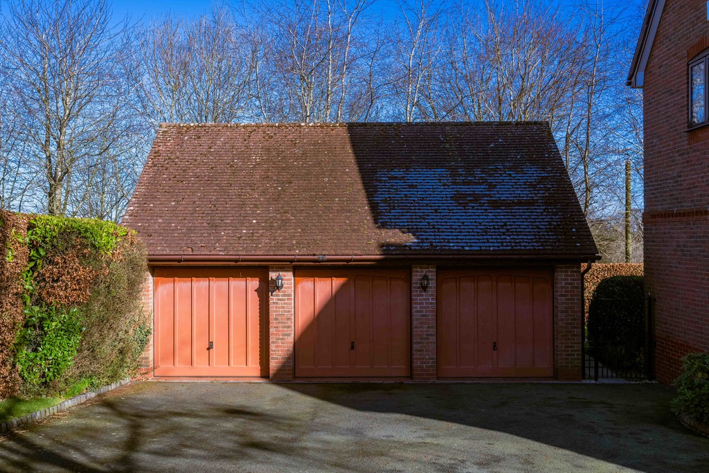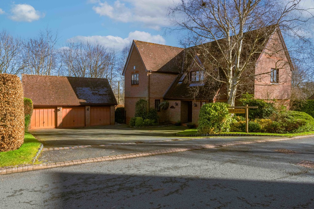 Positioned in a delightful spot within this highly exclusive development, the home is approached via a private driveway leading to a spacious parking area in front of the triple garage and main house.