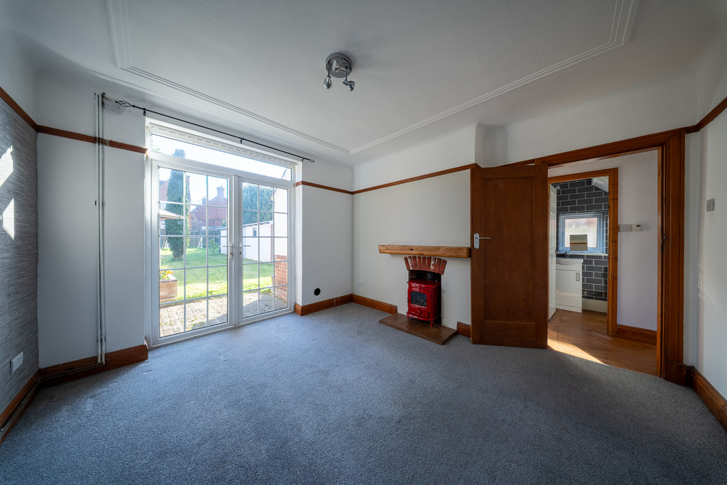 To the rear, a second reception room provides a cosy yet versatile living space with a gas-burning stove and French doors opening onto the rear garden, allowing plenty of natural light and easy access to outdoor entertaining.