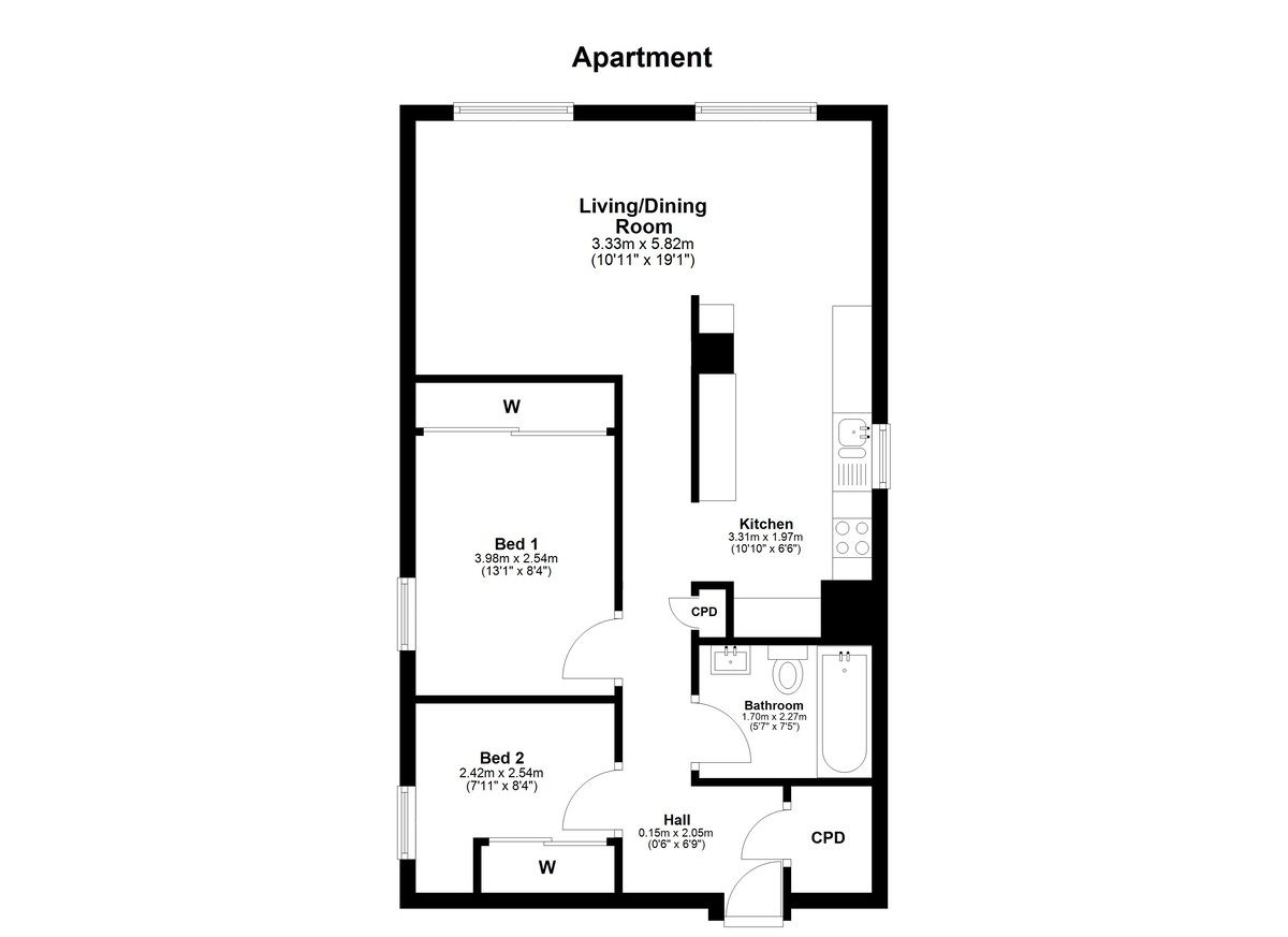 Access to the apartment is via a communal entrance hall with staircase rising to the first floor.