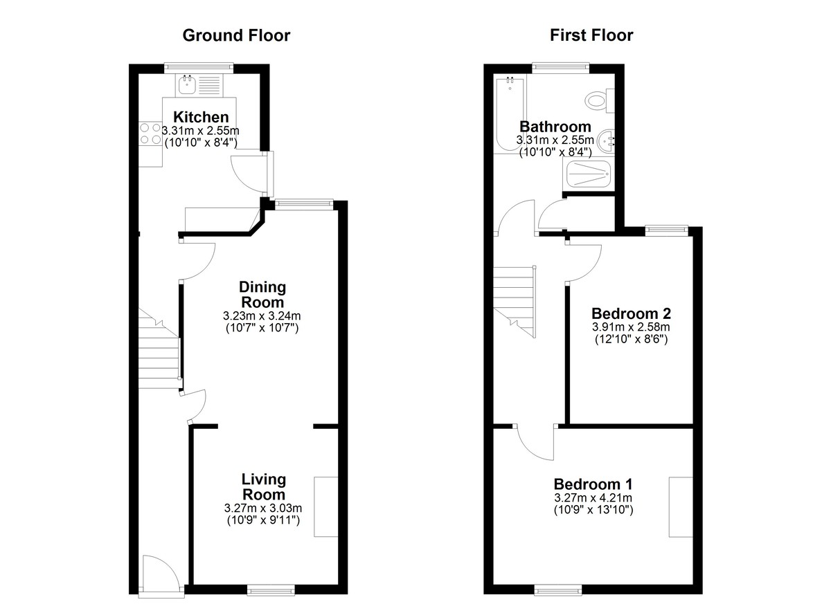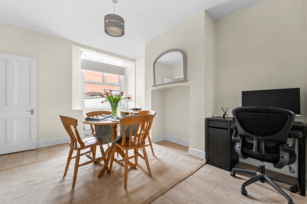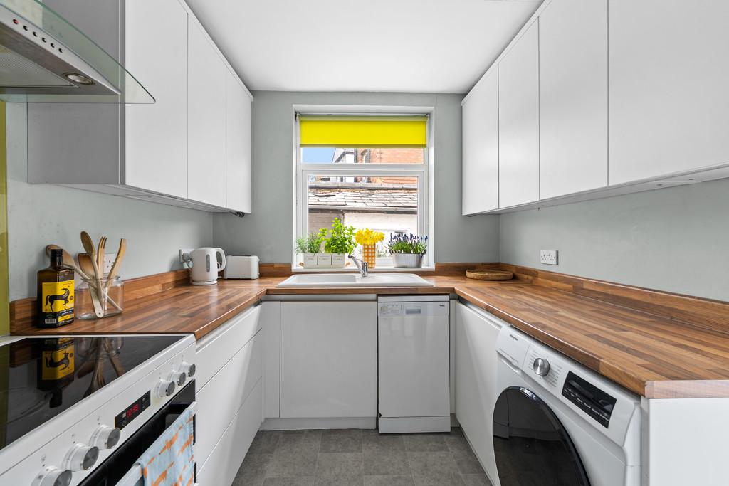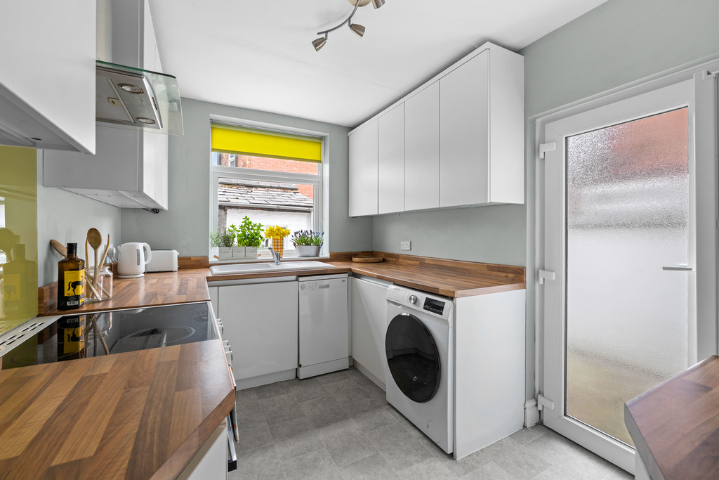 Behind its attractive period façade, the property boasts a warm and inviting interior, with generous living spaces and tasteful finishes throughout. The ground floor offers a light-filled lounge that flows openly into a spacious dining area-ideal for entertaining or relaxing. To the rear is the well-appointed kitchen with direct access to a private rear courtyard. The kitchen has a variety of wall and base units as well as a free stnading cooker, along with spaces for a washing machine, dishwasher and fridge freezer.