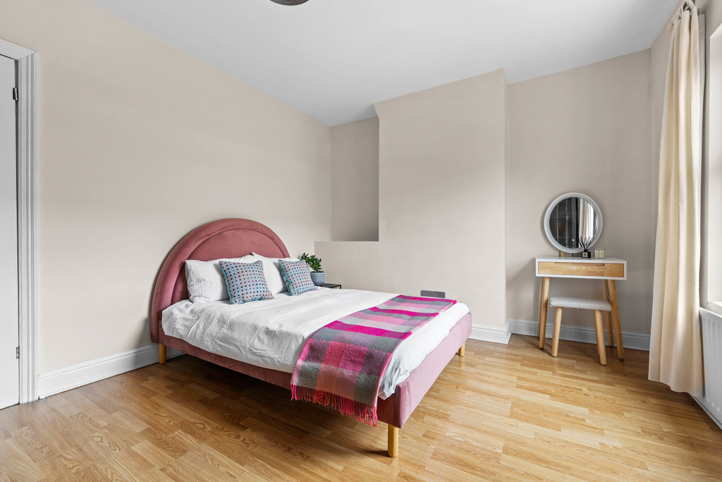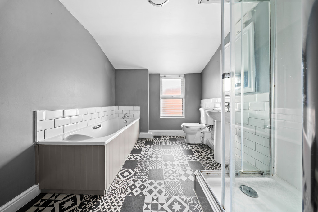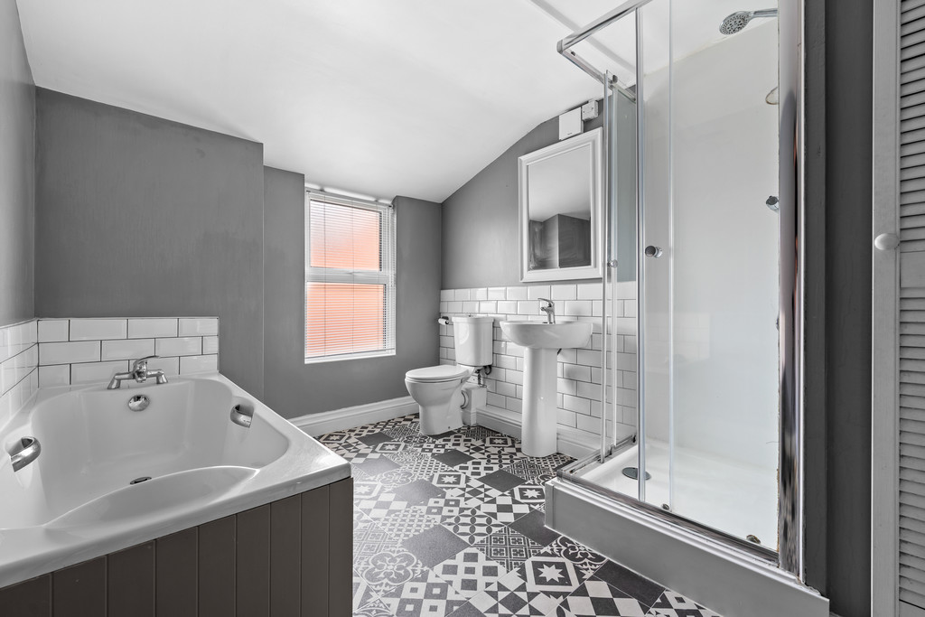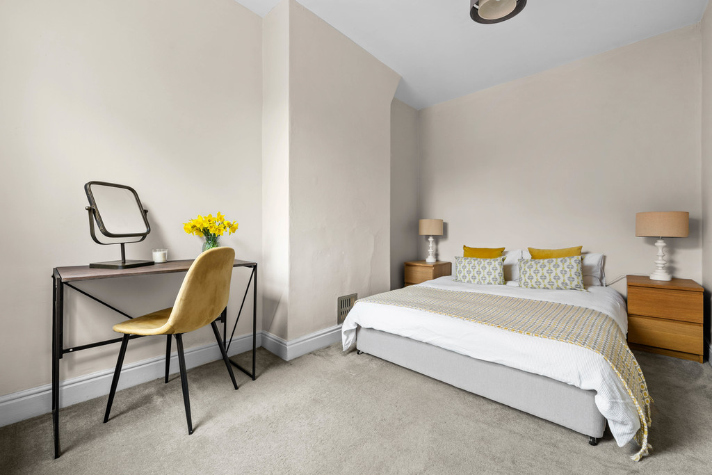 Upstairs, you'll find two comfortable bedrooms and a stylish family bathroom. The main bedroom is found to the front and spans the full widith of the property. The second bedroom is also a good sized double that overlooks the rear courtyard and currently houses a king sized bed. The bathroom has a four piece suite, with a bath, WC, sink, large shower and also a useful storage cupboard.