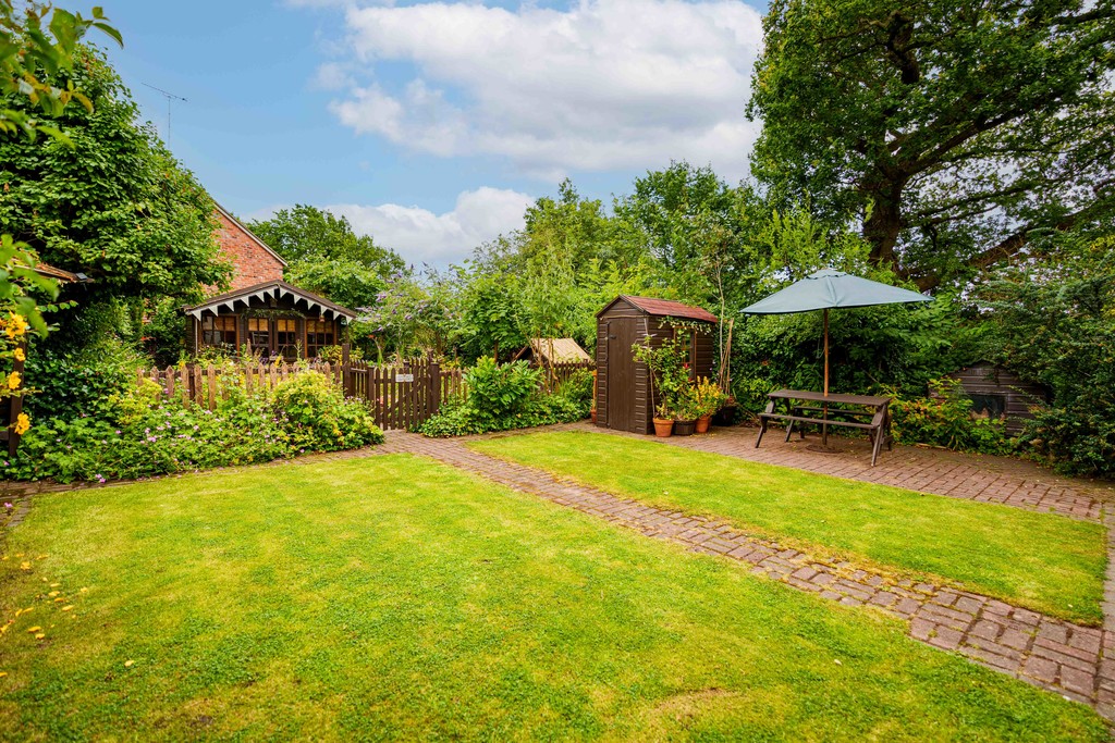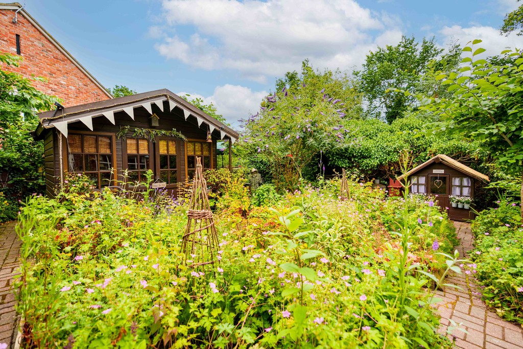 The southeast-facing main garden features mature trees, well-established borders, and multiple seating areas, including a tranquil wildlife garden. A summer house at the far end of the garden offers the perfect spot to enjoy the evening sun.