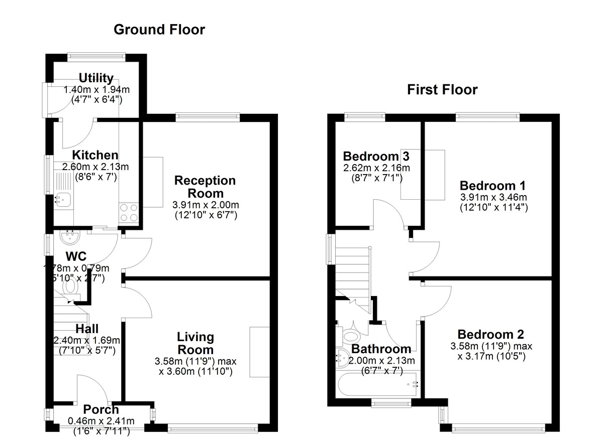 Turning to the internal space, you are greeted with a hallway with a staircase rising to the first floor and internal doors leading into the living accommodation. There is also a WC situated just off the hallway cleverly installed underneath the staircase, comprising of a dual flush WC and white hand basin. The spacious lounge to the front features a walk-in box bay window, whilst the character has been retained with picture rails and coved ceiling. The dining room enjoys a lovely aspect over the rear garden and is flooded with natural light. The kitchen is fitted with an arrangement of wall and base units, providing ample storage space. There is an inset sink, space for appliances and tiled walls, with a doorway leading into the separate utility area with further kitchen cupboard.
