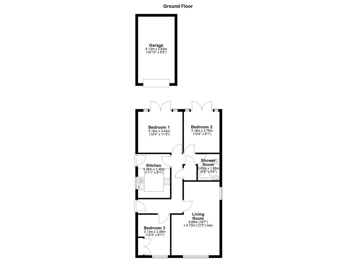 The property benefits from three well-proportioned double bedrooms, each offering ample room for furniture and storage. The stylish shower room is finished to a high standard, with a walk-in shower, modern tiling and fittings that add a touch of luxury.