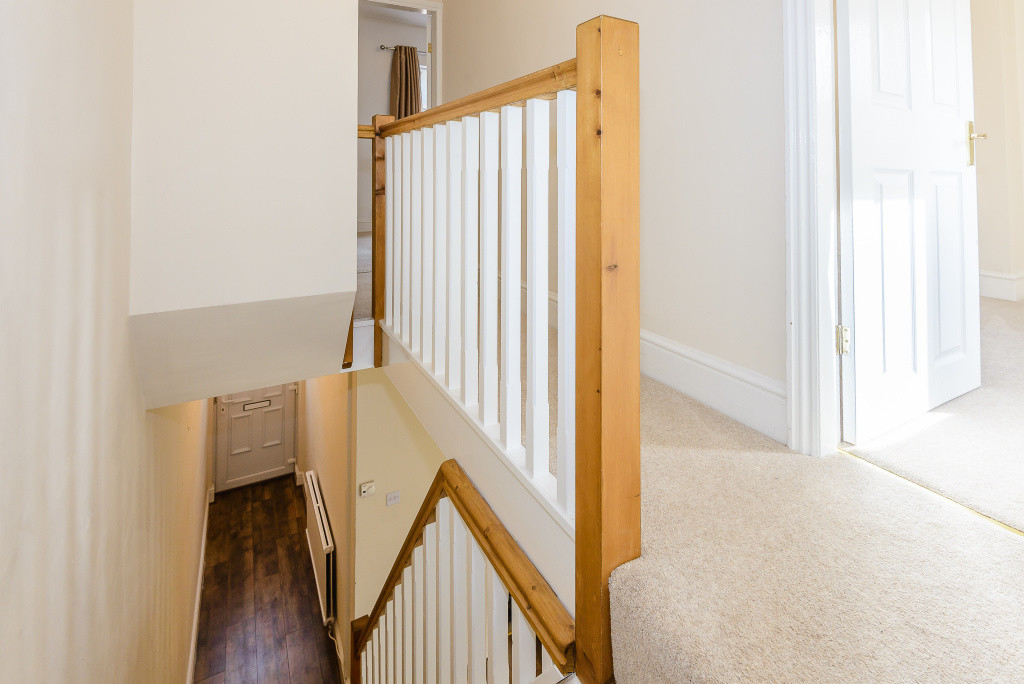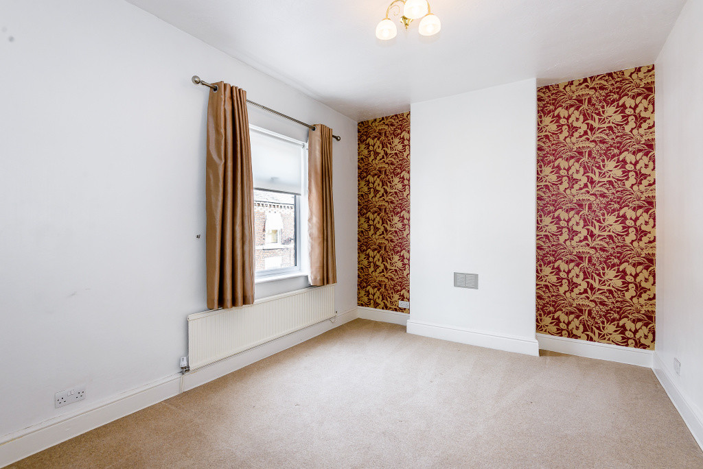 To the first floor are two generous double bedrooms. The main bedroom spans the full width of the property, creating a bright and spacious principal room. The second bedroom is also a comfortable double. The bathroom features a three-piece suite comprising a bath with shower over, WC and wash hand basin.