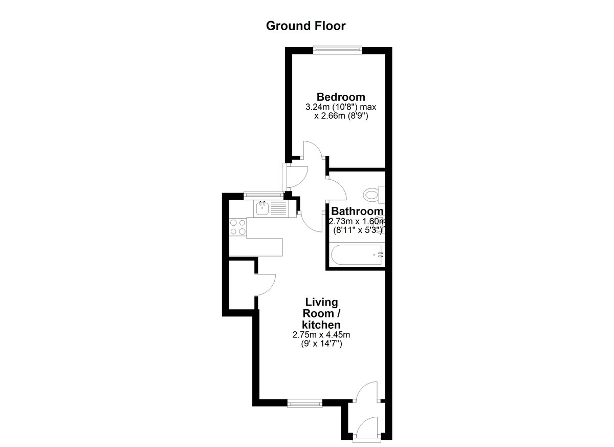 Flooded with natural light, the property briefly comprises an entrance porch leading into a well-proportioned open-plan lounge and kitchen area, complete with a useful storage cupboard. The bathroom features a bathtub with an overhead shower, a washbasin, and a WC. The spacious double bedroom benefits from two windows, allowing for plenty of natural light.